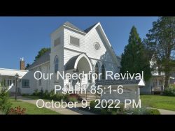 10-9-22 PM Psalm 85:1-6, Our Need for Revival October 9, 2022 Read Video SHARE ON Twitter Facebook Buffer LinkedIn Pin It Leave a Reply Cancel replyYour email address will not be published. Required fields are marked *Comment * Name * Email * Website Δ 10-9-22 PM Psalm 85:1-6, Our Need for Revival October 9, 2022 Read Video SHARE ON Twitter Facebook Buffer LinkedIn Pin It Leave a Reply Cancel replyYour email address will not be published. Required fields are marked *Comment * Name * Email * Website Δ Continue Reading 10-9-22 AM, Sunday School: How toWin an Unbeliever to Christ? 10-9-22 PM Psalm 85:1-6, Our Need for Revival